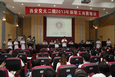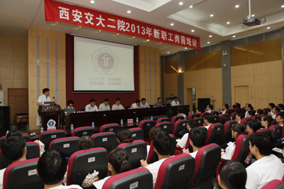 8月8日至8月9日,我院在行政楼多功能厅举行2013年新职工岗前培训,111名新职工参加了此次培训。全体院领导及各职能科室的负责人出席了岗前培训开学典礼。典礼由人力资源部主任段宗明主持。