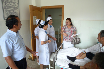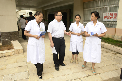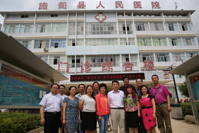 按照国家8部委及学校对云南滇西扶贫工作的有关精神和要求,我院组织14人的专家管理团队于2013年7月19 -23日赴云南保山市、施甸县及德宏州陇川县开展对口帮扶工作,本次帮扶工作是在学校及医院前期调研的基础上进行的点对点对接帮扶。主要以当地医院等级评审准备,基层医师三基培训,执业医师考试以及妇产科、泌尿外科、神经外科、骨伤康复科、急诊科、重症医学科等临床专业的人才培养、学科建设、医院管理等内容为主。在五天内先后完成了对当地三级乙等医院保山市人民医院,二级乙等医院施甸县人民医院、施甸县中医医院及施甸县妇幼保健院的学科对接和等级评审等工作,并对施甸县姚关镇中心卫生院规范化建设、人才培养提出了意见和建议;与云南德宏州陇川县卫生局及县医院、妇幼保健院进行座谈和指导,专家团队争分夺秒以务实、高效的工作作风向当地医务工作者展现了二院人严谨、求实的工作作风。参加本次专家及管理团队的人员有我院党委副书记、纪委书记、神经外科巩守平教授、党委副书记、工会主席、普外科黎一鸣教授、妇产科主任薛翔教授、骨病研究室主任兰宾尚教授、急诊科副主任裴红红教授、泌尿科副主任陈海文教授、ICU主任王国恩副教授、药剂科马小亚主任药师以及医务部韩新生主任、医疗质量控制办公室李西英主任、医院感染控制办公室李金娜主任、教务部马肖容主任、护理部刘红梅副主任、工会副主席、扶贫办王建主任。本次专家团队由主管扶贫工作的黎一鸣副书记带队。