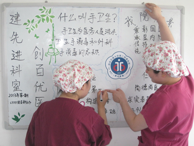 6月14日下午,消毒供应科团支部委员在司慧君主任的带领下,组织全科人员学习创优知识:牢记我院院训的真正含义,掌握我院宗旨,期待我院的美好愿景。为了巩固学习成果,团支部委员共同制作了创优知识板报。板报悬挂在会议室,方便大家持续学习,希望每个人能够从创优知识中提获取能量,从自身工作出发,提高工作质量,优化服务,更好的做到“服务好、质量好、口碑好、临床满意”,更好地响应医院的“创优”工作。