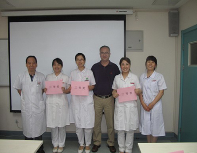 由院工会和护理部共同举办的《第二届护士授课竞赛》已在我院全面启动,各工会部门积极响应,纷纷行动。7月4日下午,由工会十一部门举办的护士授课竞赛决赛在肿瘤外科示教室举行,院党委副书记、工会主席黎一鸣教授致辞,工会副主席王建、护理部副主任孔德玲、急诊科主任李丽君、肿瘤外科主任王西京、神经外科主任屈建强及外联部主任乔万海担任评委,李小宁、徐岁云、屈莉、王宝娜四位护士长分别担任统分员和计时员。本次比赛共有11名选手参加,每位选手分别向大家展示了精心准备的内容,选手们精彩的授课得到了各位评委高度评价,比赛现场气氛热烈,不时响起阵阵热烈的掌声。经过激烈角逐,肿瘤外科许雅琼夺得第一名,比赛还产生两名二等奖,三名三等奖。