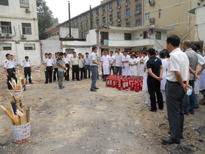 2013年5月22日下午,我院保卫部组织全院各科室在南院立体停车场工地进行了消防安全演练,共有60余人参与到了这次活动中。