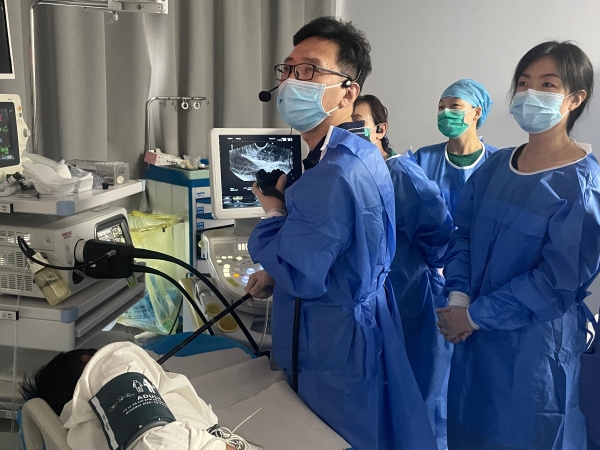 在手把手带教环节,马师洋教授、李真教授、史海涛教授分别对来自洛阳市级及县级医院的7名内镜医生进行手把手带教。通过对6例患者的操作演示及现场讲解超声内镜的操作技巧,学员们纷纷表示此次手把手带教活动提高了他们对超声内镜的认识和技术水平,受益良多。