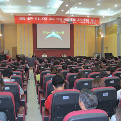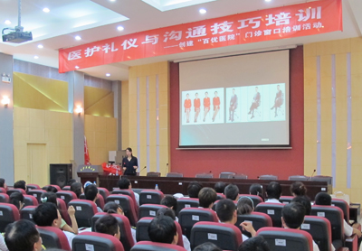 5月15日下午,门诊部组织门诊各窗口部门全体工作人员及部分临床科室青年医师开展了“医护礼仪与沟通技巧”培训活动。此次培训特邀请长安大学著名讲师李菲教授主讲,李菲教授曾经多次为西安市公务员、军转干部、高校教授进行过礼仪方面的培训。