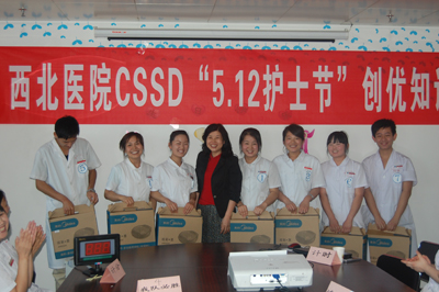 为积极响应“创百优医院”号召,迎接5月12国际护士节的到来,消毒供应科于5月11下午在科室举办了一场别出心裁的“创优知识竞赛”,护理部杨惠云主任和感染办李金娜主任参加了本次竞赛。
