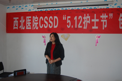 竞赛开始,消毒供应科司慧君主任讲话。她回忆起供应室到供应科的重大转变,她表示科室点点滴滴的变化与大家的兢兢业业和无私奉献密不可分,此次竞赛不仅仅是一次竞赛,更是相互学习、展示才华、共同提高的一个平台,并致以护士兄弟姐妹们节日的祝福。