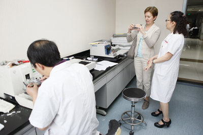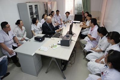 刘原副院长向来访的奥地利客人简要介绍了医院的基本情况,重点展示了医院近几年在人才培养和科学研究领域取得的成绩。奥地利医学专家团成员就关心的医生培训质量检查和中医膳食的作用等问题分别与相关学科及职能部门负责人进行互动交流。专家团还带来了《新的慢性丙肝患者治疗方案》和《对糖尿病病人的院内管理工作》两场专题讲座,并与相关学科人员深入探讨。