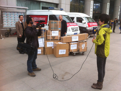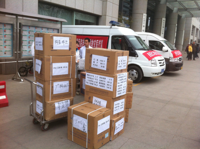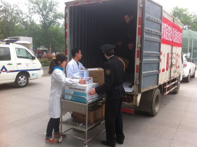 2013年4月21日8点,贺西京院长、高亚副院长召集各部门查验所准备的药品、医疗设备器材和后勤保障物资等,并要求将物资分类清点装车,只等接到上级命令,立刻出发奔赴灾区。