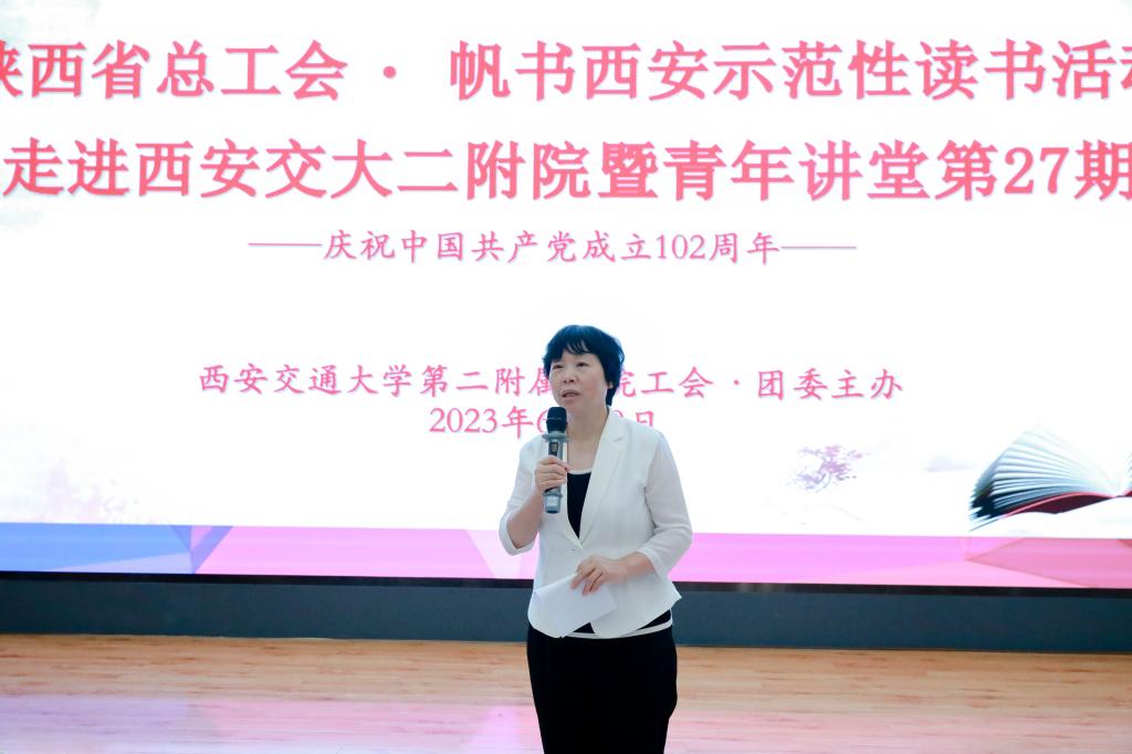 为进一步弘扬传统文化,传播国学经典,涵养教职工人文素养,增强文化自信,6月29日下午,陕西省总工会·帆书西安示范性读书活动走进我院,联合院工会、团委举办了《苏东坡传》读书分享会暨第27期青年讲堂。活动由工会副主任张耀婷主持,帆书讲师赵岚主讲,院党委副书记党变玲参会。来自各部门工会及各青年团员等近50余名教职工参加了此次活动。