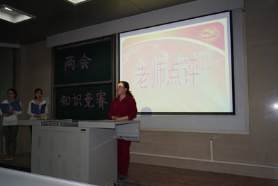 为了进一步学习贯彻落实“两会”精神,我院学工部和学生党总支按照校院党委要求,精心布置安排,组织各年级学生及学生党员认真学习两会精神。结合学习情况,于 2013年3月31日晚8点,在科教楼第一教室举办了“关注两会,你我奋进,共建美丽中国”知识竞赛。