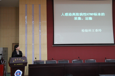 检验科王香玲主任讲解H7N9禽流感病毒标本的采集和运输原则