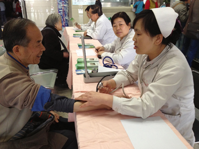 在干部保健办公室的帮助下,干部一病区为本次活动做了精心准备,制作了近三百份精美的老年病诊疗指导手册为患者发放。何娅主任、贾振峰副教授、冯建军主治医师为患者免费诊病、咨询、答疑解惑,进行神经科诊疗项目介绍,发放宣传资料等。护士长姚婕、护士张红梅、阎丽萍、吕丹帮患者仔细登记并热心指导挂号,测量血压,并进行帕金森病及其它神经科疾病的健康教育。虽然门诊大楼人声嘈杂,但她们反复地解释,热情耐心地服务每一位患者。现场就诊咨询的患者说:“希望你们多举办这样的活动,造福我们病患!”