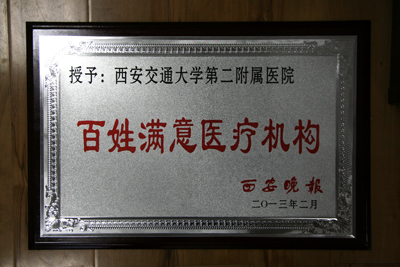 由《西安晚报》发起并主办的请市民和读者参与的“2012年度百姓满意医院、特色科室”评选活动揭晓,我院荣膺“百姓满意医疗机构”。
