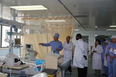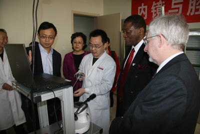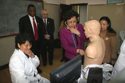 随后,在刘原副院长的带领下,外宾们参观了我院科研实验中心、外科动物实验室、护理技能培训室、微创技能培训室、临床技能训练中心、听诊电子标准化病人训练室、OSCE考站、手术示教室、重症监护室、传染科等医疗、教学、科研场所,增加了双方的相互了解,为进一步合作打下了基础。