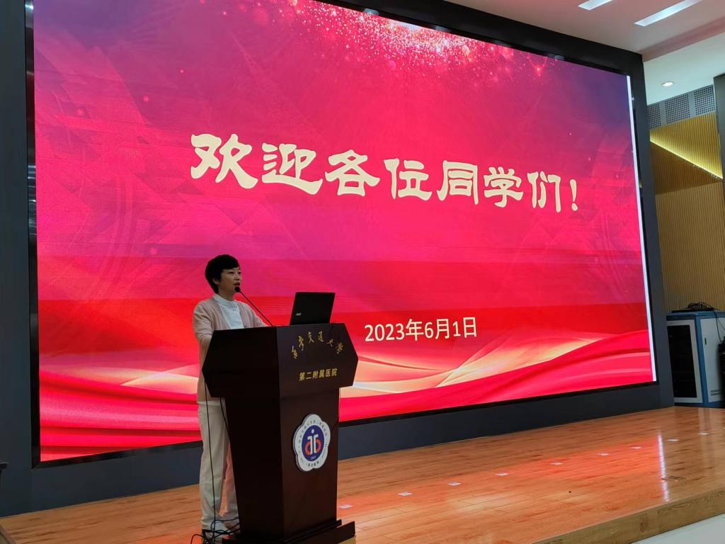 护理部副主任姚聪对实习生的到来表示热烈欢迎,就医院发展历程、医院环境、护士礼仪规范、护士相关法律知识等进行详细介绍,希望同学们能尽快适应角色转变,在实习期间能够严格要求自己,遵守医院各项规章制度,自觉服从医院管理;勤学好问,将学校学到的理论知识同临床实践相结合,进一步提升专业技能,并积极参加医院各项活动。在姚聪副主任的倡议下,全体同学一起重温了医学生誓言。