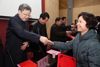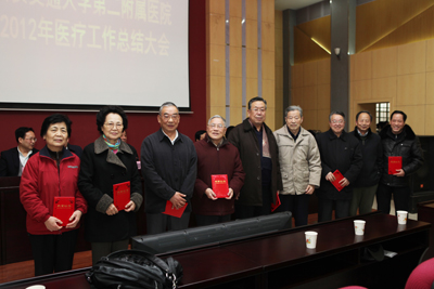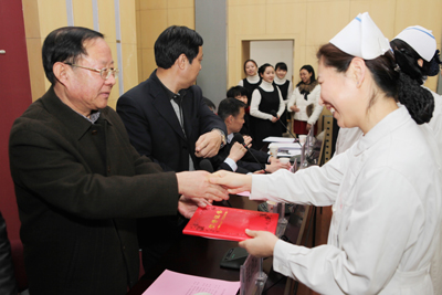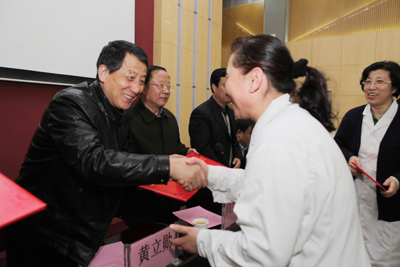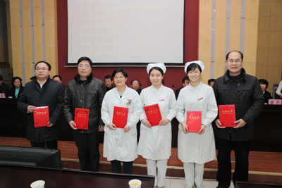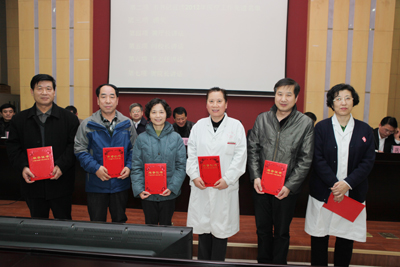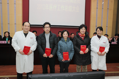 校医学部副主任王子明教授宣读了2012年度为医院发展建设做出突出贡献并受到表彰的先进集体和个人名单,并同与会领导为受表彰的科室和个人颁发了荣誉证书。