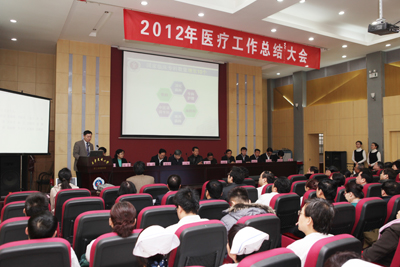 首先,主管医疗工作副院长高亚教授做2012年医疗工作总结,高院长指出,通过全院教职员工的共同努力,主要医疗指标连续3年两位数提升、国家临床专科数量增加到10个;医疗服务质量和社会美誉度持续改善;医疗核心竞争力再上新台阶;通过提供多层次全方位服务,医疗服务质量不断改进;强化核心制度落实,严格技术准入,加强医疗技术培训和医疗安全教育等,医疗质量持续提高;鼓励开展标志性医疗技术,腔镜、微创手术比例达到38%,神经内科脑血管介入技术保持西北领先,多学科联合成功完成妊娠合并单心房、单心室剖宫产手术;积极开展自体血回输技术,提升合理科学用血水平,受到卫生部督导检查组表扬;启动“医护全程诊疗模式”、“健康教育互动模式”和临床护理路径,实施责任制整体护理模式,实行护士岗位、分层及绩效管理,受到卫生部“医疗质量万里行”督导检查组赞誉;多学科联合救治日本友人山田茂、慈善人士“南非妈妈”阿曼达和合作救治贫困先心患儿,充分彰显医院的社会责任。在总结成绩的同时,也分析了工作中存在的问题和不足,并部署了2013年医疗工作的发展思路和方向。面对新一年的挑战,高亚副院长强调要进一步规范医疗行为,增强服务意识,全面提升服务质量,不断优化服务流程,强化环节管理,提升运行绩效,努力为人民群众提供安全、有效、方便、价廉的医疗服务。