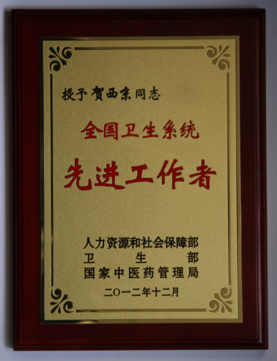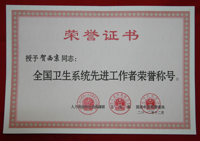 ?2013年1月7日,2013年全国卫生工作会议在北京召开,会议宣读了国家人力资源社会保障部、国家卫生部和国家中医药管理局联合下发的《关于表彰全国卫生系统先进集体、先进工作者及白求恩奖章获得者的决定》,我院贺西京院长荣获“全国卫生系统先进工作者”称号。