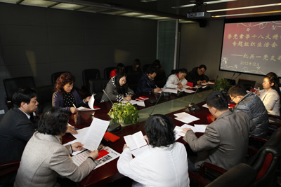 12月6日上午,机关一党支部在行政四楼会议室召开“学党章学十八大精神专题组织生活会”。全体党员学习了新党章,进行了“学习十八大精神知识答题”。院党委书记韦俊荣参加会议并畅谈学习十八大体会。会议由支部书记党变玲主持。