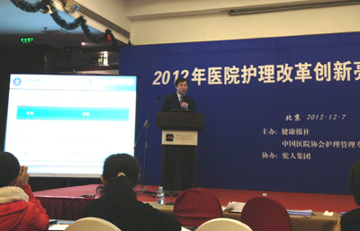 我院高亚副院长以 “创精品护理 建卓越团队”为题进行了大会发言,就我院开展优质护理示范工程以来对护理管理机制及模式所作的探索、取得的成效进行了经验交流。高院长精彩的演讲以及我院的护理岗位设置、分层管理及培训、专科建设、绩效考核、医护全程诊疗模式、健康教育互动模式及护理临床路径等引起与会者极大的兴趣和关注。