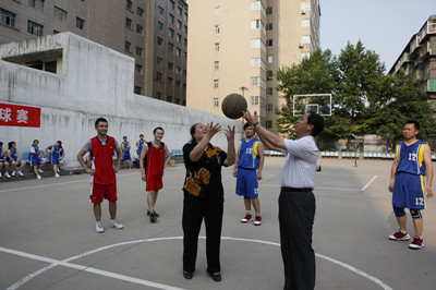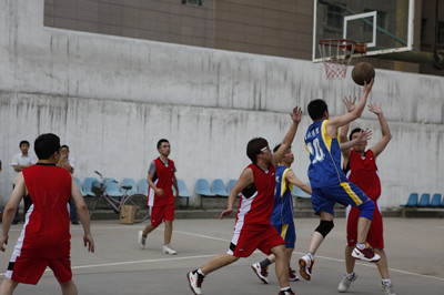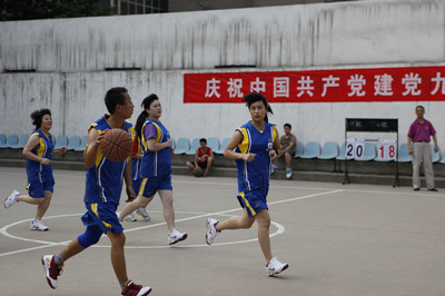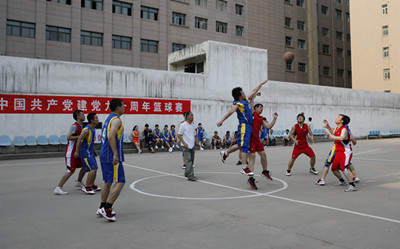 为庆祝建党90周年,继我院与省广电网络西安分公司垂钓大赛后,我院教职工篮球联谊赛“第二医院vs口腔医院”于6月22日下午在南院灯光球场开赛,口腔医院院长周洪、党委书记李晓红、党委副书记李刚、工会主席刘新奇等在我院党委书记韦俊荣、党委副书记巩守平、财务总监谢丹和工会主席黎一鸣的陪同下观看了比赛。裁判一声哨响,李晓红书记和韦俊荣书记为两队开球,队员们个个生龙活虎,雄姿英发,在场上你争我夺,一轮轮地抢球,投球动作潇洒,每个动作争锋相对,帅气利索。双方争夺异常激烈。比赛进行地如火如荼,双方队员都情绪高涨,观众亦激情四射,啦啦队也喊得气势磅礴,为场上的队员呐喊助威,现场的气氛十分活跃。最终,二院男代表队胜出比赛,之后女队进行了表演赛。