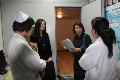 我院耳鼻咽喉头颈外科病院常务副院长许珉向检查组汇报了病院开展电子耳蜗手术的基本情况和在该项目上的优势、特长等。接着考察团进行现场查看硬件设施、专业技术梯队,到病房询问家属对手术效果的评价。