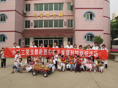 5月28日,在支部书记郭新奎、支委屈建强、刘重霄及老书记张宪生的带领下,外科三党支部19名党员和入党积极分子前往西安市儿童福利院进行了慰问和查体活动。大家分组协作,对三个班的100余名儿童进行了体检,对曾经在我院进行过手术治疗的患儿做了随访复查,对涉及小儿外科和神经外科相关疾病如腹股沟疝、隐睾、多指、脑积水、脊膜膨出、脊髓栓系等,需要手术治疗的20余名患儿进行了详细的登记,并建议尽早来我院手术治疗,我们将对患儿提供优质的医疗护理服务。神经外科医护人员对30余名脑瘫患儿的康复进行了有针对性的指导。查体结束后全体人员与福利院领导及工作人员进行了座谈,对我国及我省孤残儿童及救治现状有了一定的认识。大家希望将此类活动定期或不定期的、长久的开展下去。