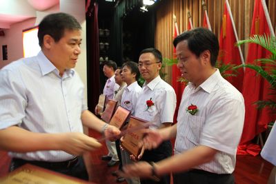 在学校庆祝中国共产党成立90周年暨表彰大会上,校党委王建华书记做了重要讲话,王小力常务副书记宣读了省教工委和校党委关于表彰先进集体和个人的决定。我院耳鼻咽喉科党支部和韦俊荣、黎一鸣同志分获陕西省教工委“先进党支部”、“优秀党务工作者”和“优秀共产党员”荣誉称号;我院党委荣获学校“先进分党委”荣誉称号,儿科党支部、机关一党支部和董蕾、刘鹏涛、许珉、薛荣亮、李小鹏、张玲同志分获学校“先进党支部”和“优秀共产党员”荣誉称号,文博荣、侯伟同志荣获西安交通大学“优秀党支部书记”荣誉称号,巩守平同志荣获西安交通大学“优秀党务工作者”荣誉称号。这些荣誉的取得既是对我院党委、全院各党支部、全体共产党员既往工作的肯定,也是我们今后进一步立足岗位,切实做到“五个好”、“五带头”,为医院发展添砖加瓦的强大动力。