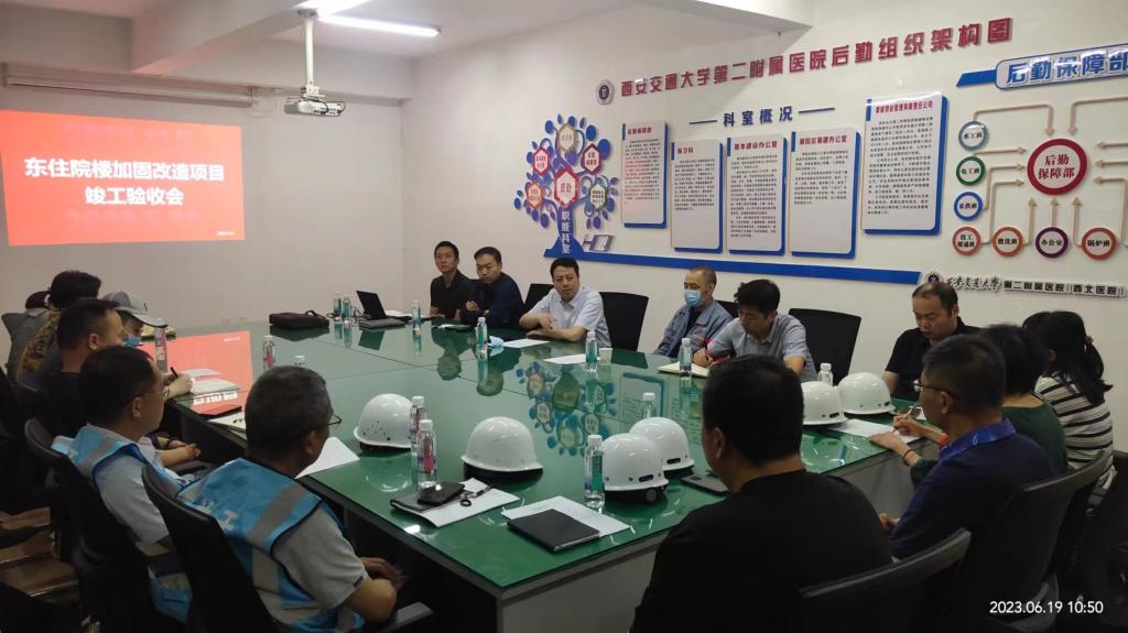 2023年6月19日上午,后勤保障部组织的东住院楼加固改造项目竣工验收会议在后勤保障部三楼会议室召开。