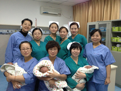 10月11日的中午,新生儿科接到手术室的紧急会诊电话,要求会诊的患儿竟然是少见的三胞胎(两女一男)。经了解,孩子的母亲因为先兆子痫,情况危急,必须急诊剖宫产。妇产科手术顺利,但孩子只有33周,早产加多胎,这是真正地高危儿。新生儿科的王惠萍主任,护士长辛芳琴带领着全体医护人员,迅速成立了治疗小组,每个孩子专人专理。经检查:三个孩子均为低体重(身形如同刚出生的小猫般大小),依次为:1474克,1860克,1960克。三个孩子虽为一母所生,病情却大不相同。老大体重最低,住院后呼吸不好,经确诊合并有新生儿湿肺。老二反应稍差,感染指标非常明显,最终确诊早发型败血症;老三是男孩,体重最重,但是病情也不轻,除了有败血症的存在,心肌也受到了累及,诊断为心肌损害。三胞胎实属罕见,早产加低体重,再加上感染,真是难上加难。考虑到患儿家属来自商洛农村,经济也不富裕,如何用最少的花费抱住每个孩子存活,王主任和辛护士长反复商量,想尽办法为孩子们减少花费,制定出了最优化的治疗方案。