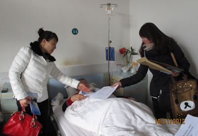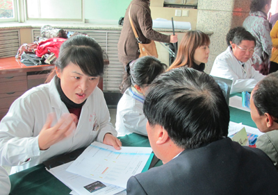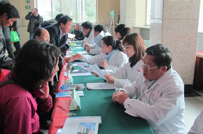 早上7点,支部的党员同志与义诊专家在支部书记王丽娟主任和门诊办吴世学主任的带领下历时3个多小时到达商洛市中心医院,虽然天气严寒,而且还下了雨,但大家为病患服务的热心高涨,我院专家们下车后立即投入到认真的接诊工作中。由于义诊活动之前,党支部作了充分的前期准备工作,商洛市中心医院配合进行了广泛宣传,义诊得到当地老百姓的热烈欢迎。在商洛市中心医院的大力配合下,我们针对不同病患在商洛市中心医院门诊大厅设立了义诊台以及关于医保的相关咨询处,通过采取现场咨询接诊,免费测血压,宣传展板、宣传单等形式,向广大病患群众传授卫生健康知识,为群众免费体检治病。一大早医院门诊大厅里人潮涌动,各临床专科的专家为广大患者提供全方位、高质量的诊疗、咨询服务。支部党员同志配合专家义诊在门诊大厅发放我院的宣传手册,并下达相关病房科室发放宣传材料。当地的老百姓对专家们的义诊活动赞不绝口,所有义诊专家同党支部党员同志工作情绪高涨,精神饱满,没有休息片刻,一直热情细致地接待着每一位咨询就诊的病患,让病患不用挂专家号就能享受名医、专家的服务。