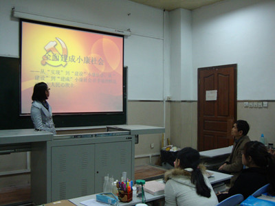 首先,主持人彭艳对本次召开的为期一周的十八大会议内容进行了系统介绍,引领大家概括性地学习了十八大会议的重要报告和讲话,了解了本次大会“全面建成小康社会”,“以人为本,公正公平”,“关注青年,关心青年,关爱青年”等主题精神。随后,支部成员间进行了讨论,发表了各自的想法。民生是大家关注的一大热点,有些同学从学有所教,劳有所得,病有所医,老有所养,居有所住几个方面,分别从自身经历、所见所闻和大家分享了祖国发展带来的巨大改变;有些同学从大学生就业上的优惠政策,谈及大学扩招等人性化措施;还有同学谈及公平公正问题,逐步实现公平分配,达到共同富裕以及文化传播,文化传承和“美丽中国”,生态建设等等。