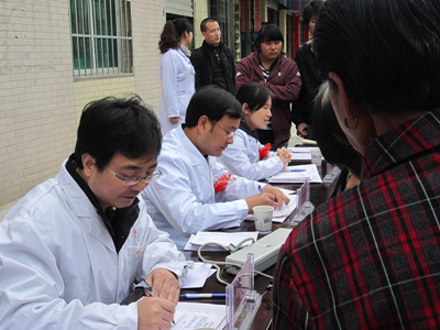 义诊现场(3)骨科副教授杨平林、妇产科副教授樊江波正写病历
