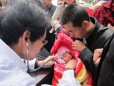 义诊现场(2)儿科陈玺副教授为当地儿童检查身体
