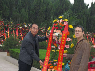 外五支部书记李少民、宣传委员张鹏向习老雕像敬献花篮