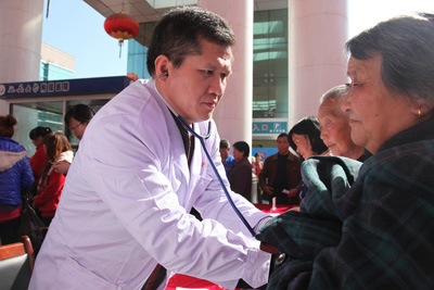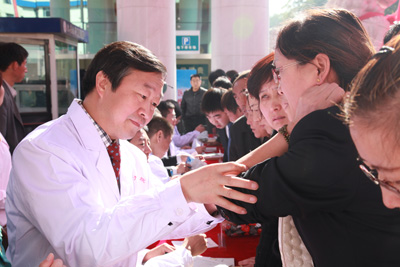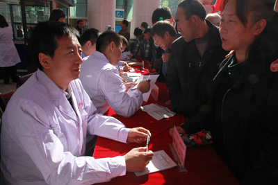 揭牌仪式后,我院专家和教授在延大附院大门前参加了“携手共进 同创未来”大型义诊活动。专家们认真细致地为慕名而来的数百名群众义诊,检查分析病情,并给出合理的诊疗建议。