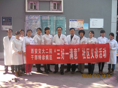 金秋十月,风和日丽。为响应我院关于“在临床科室开展三好一满意活动”的号召,10月30日下午,我院干部保健特诊病区的全体医护人员在科主任李玺教授及护士长李婉妮的带领下,在省政府西五路干休所主要对离退休老干部进行了义诊咨询活动。