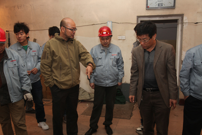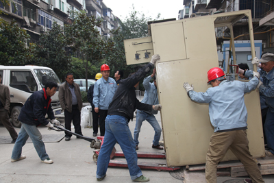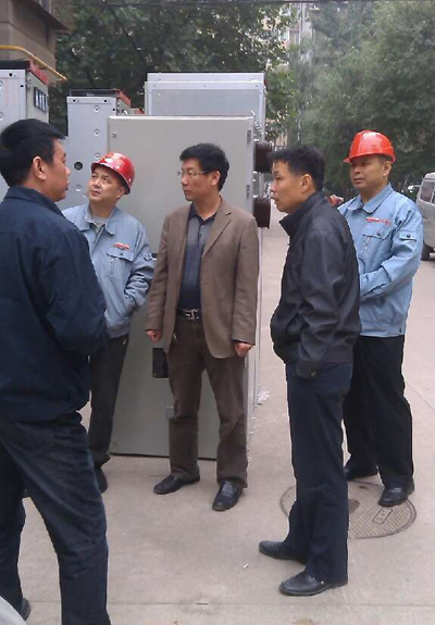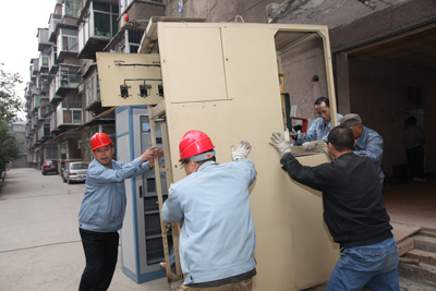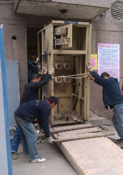 10月22日上午,我院和施工单位做了详细的施工预案,下午在院保卫部和施工单位的配合下,对院门口到配电室的道路进行清道工作,以便确保第二天高压柜能顺利进入施工场地。23日凌晨6点,由项目施工单位的工作人员运送的高压柜顺利进入施工场地。李文典副院长亲临现场,协调各相关部门工作。在后勤服务部陈庆杰副主任的组织领导下,院保卫科、退休办、工会等相关部门的大力支持下,电工班全力以赴协助施工人员于下午17点整顺利完成新、旧高压柜的更换工作,以及新高压柜的组合、连接以及耐压实验。在供电局的大力配合下,于下午17点57分成功供电。