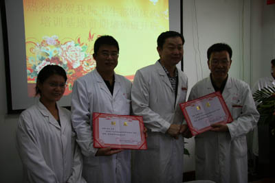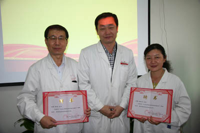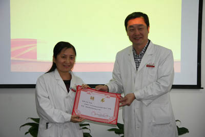 高亚副院长在仪式上做了重要讲话。他指出,传统的以医生和护士组成的治疗团队正在逐渐过渡到医、药、护三位一体的治疗模式,药师的专业优势将在临床治疗中起到重要的作用。接着,仵文英主任介绍了卫生部临床药师制建设及我院临床药师基地申报的情况,指出我院临床药师队伍经历了从无到有、从小到大的过程,本次基地申报成功是多年工作积累的结果,但临床药师仍处于成长的阶段,希望临床药师们能继续努力提高自身水平,也希望临床主任们能多支持临床药师的工作。董蕾主任、李雅莉主任、李浩鹏主任、王国恩主任等均表示临床非常需要、也十分欢迎药师参与到临床治疗团队中,并将全力配合临床药师基地工作的开展。最后,高亚副院长给各位带教医师和带教药师颁发了聘书。