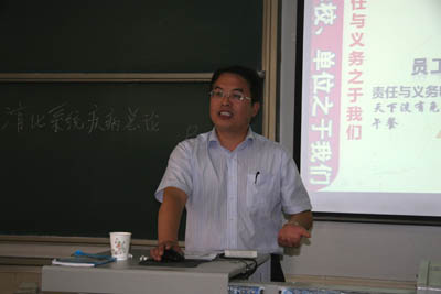 针对参赛党政后勤管理科室工作人员的年龄特点,巩守平副书记的讲座以“对70后、80后不得不说的话”为题,从70后、80后的群体特点切入,分析了两个群体各自的优缺点以及这些优缺点在工作中的表现形式,并从家庭、学校、单位三种环境对个体不同要求的对比中,强调了作为一个单位人在工作岗位上应尽的责任和义务,进而引申出作为一名管理人员应该具备勤勉敬业、精通业务的基本素质。讲座同时分析了由于“国家用人制度的变革”等因素对80后产生的心理影响和困惑,指出制度完善需要一个过程,要用发展的眼光看问题,做一个在机遇降临时有准备的人。最后,巩守平副书记寄语年轻人要有责任意识、学习意识、上进心、奉献意识和大局意识,以本次岗位技能大赛为契机,练好基本功,提高工作效率,提升服务质量,可谓语重心长,情意殷切。
