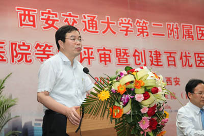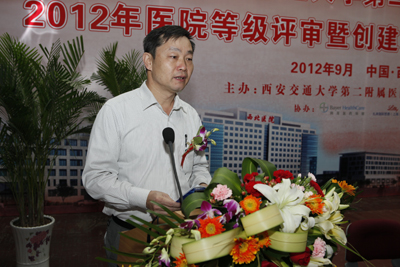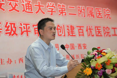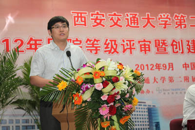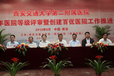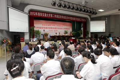 9月15日,我院2012年医院等级评审暨创建百优医院工作推进会议在南院大礼堂召开。卫生部医疗服务监管司张宗久司长、卫生部医疗服务监管司评价处刘勇处长、卫生部评价中心张振伟主任、厦门大学附属中山医院张振清副院长、山东大学第二医院等级评审办公室司春峰副主任莅临我院并做了关于创建优质医院及医院等级评审的专题报告,陕西省卫生厅副厅长黄立勋、西安交通大学副校长闫剑群教授应邀参加了会议并作了重要讲话。