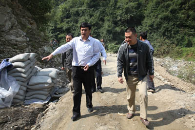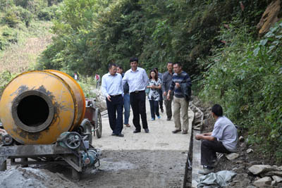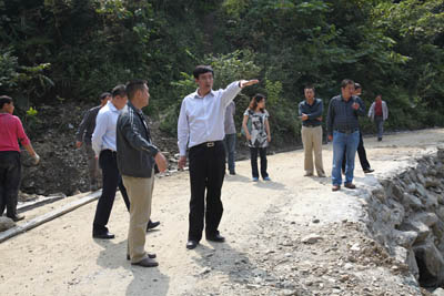 考察洛河街村正在拓宽和完善的村村通示范公路