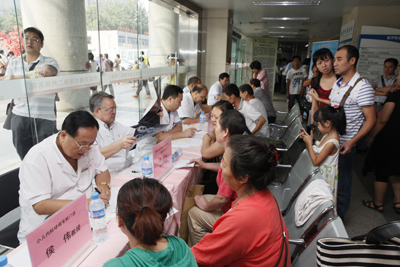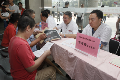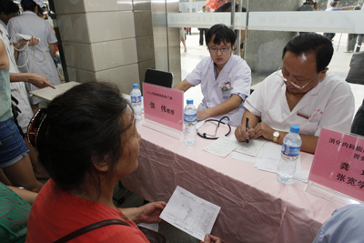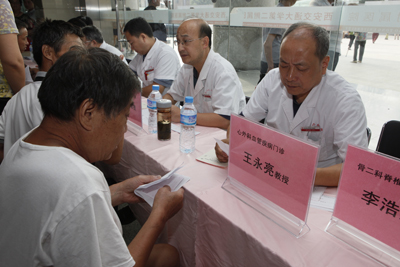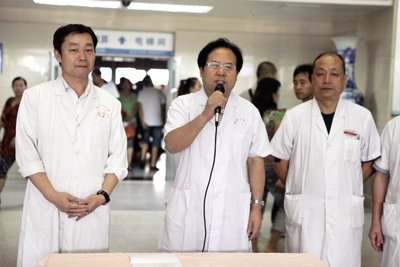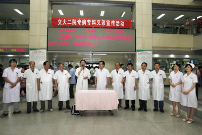 义诊活动仪式上,贺西京院长就之前我院门诊工作进行了总结,截止2012年8月28日门诊量已突破一百万,较去年同期增长约20%,并有望在今年年底突破门诊量150万大关。高亚副院长就我院目前开展的11个专病专科门诊进行了简单的介绍,对参加本次义诊的专家表示感谢,并希望通过专病专科门诊工作的展开促进门诊诊疗质量的提升,为患者提供更专业、更便捷的诊疗方式。