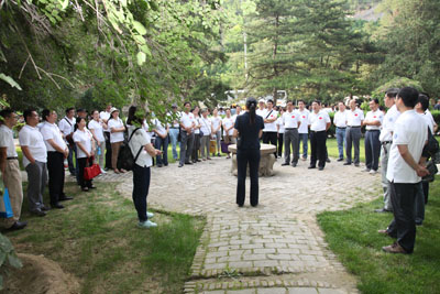 8月23日下午到达延安后,培训班即组织学员参观了延安革命纪念馆。延安革命纪念馆通过8个展厅,用大量珍贵革命文物、文献和照片,生动、形象地再现了自1922年陕西成立党组织至1948年西北人民解放军收复延安期间老一辈革命家在延安住窑洞、吃小米、驱日寇、迎解放的奋斗历史,系统全面地介绍了党中央和毛泽东同志等党的主要领导人在延安和陕甘宁边区领导中国人民英勇斗争的光辉历史。在延安,老区人民用生命和鲜血哺育了中国革命;在延安,毛泽东思想逐步成熟,并确立为党的指导思想;在延安,广大军民轰轰热烈的大生产运动,为革命胜利奠定了坚实的物质基础;在延安,党中央成功地指挥了抗日战争和解放战争,为共和国的诞生谱写了一曲可歌可泣的历史赞歌;在延安,有一种精神值得我们永远铭记和学习,这就是延安精神。学员们在延安革命纪念馆,不仅感受了革命先贤在延安艰苦奋斗的历史历程,而且系统地了解了延安精神的由来和内涵。大家纷纷表示延安精神是我党的宝贵财富,在现今物质文明飞速发展的时代,延安精神所包含的艰苦奋斗、自力更生、全心全意为人民服务、理论联系实际、开拓创新等内涵,不仅没有过时反且无论是在日常生活中还是医疗工作中都更显弥足珍贵。