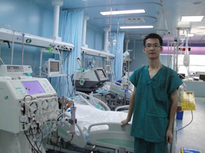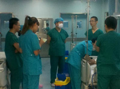 府谷县人民医院濒临黄河,床位600张,目前为二级甲等医院,计划未来2年内报审三级乙等医院。卫生部医改试点医院,陈竺部长对口指导医院。重症医学科是集中救治危重患者的独立科室,是高密度先进医疗设备及技术的集中地,同时也是国家对二级以上以上医院的必须要求。我院重症医学科韩锋主治医师来到府谷县人民医院后,立即投入到重症医学科筹建中,包括病区布局与改造,科室规章制度建立,医护人员岗前培训等。两周后,府谷县人民医院重症医学科如期开诊。一月余来,共收治急性肾功能衰竭、重症肺炎呼吸衰竭、糖尿病酮症酸中毒昏迷等多名危重症患者。在府谷县人民医院第一次成功开展持续血液净化治疗技术,截止目前,已经累计为4名患者成功实施该治疗,累计治疗时间超过100小时,使当地医务人员初步掌握和独立开展该项目。同时,府谷县人民医院第一例纤维支气管镜检查,第一例锁骨下静脉穿刺及中心静脉压监测,第一例桡动脉穿刺有创血压监测,第一例全肠外营养,第一例亚低温冬眠治疗等诸多具有ICU特色的开创性医疗技术在韩锋医师带领下纷纷得以开展。呼吸机、抗菌素、血管活性药物的规范化应用,循环状态的判断与干预,危重症患者人工气道的建立与维护、镇静与镇痛等一系列的新知识新理念也通过韩锋医师主持的每日教学查房及每周的科室内学术讲座在府谷县人民医院重症医学科的全体医护人员中得以推广普及。一例34岁的脑干出血患者慕名从黄河对岸的宝德县人民医院转来府谷县人民医院重症医学科,经过28天的紧张救治,患者顺利度过了中枢性呼吸抑制、中枢性尿崩症、中枢性高热、应激性溃疡、吸入性肺炎等并发症,病情逐渐趋于稳定。
