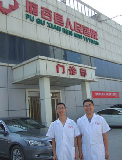 韩锋医师与吴仲恒医师在府谷县人民医院门诊部前合影