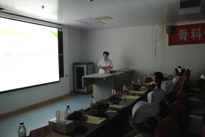 下午4点,在热烈的掌声中,交流会正式开始。首先,骨二科吕惠茹护士长对健康教育互动模式在骨科临床护理中的应用进行了总体汇报,健康教育互动模式在骨科试运行已经有十个月的时间了,通过试运行、讨论、提出问题及解决措施、再运行等反复试点,总结出健康教育互动模式的运行的基本方式,并通过大量的图片与大家分享。随后由潘韩莉、沈维艳、袁翠翠等6名骨科临床责任护士分别就健康教育互动模式在各自临床工作中的应用及体会给大家进行了介绍,并通过现场提问与大家互动,进行了交流。接着,各参会领导分别就交流会发表了意见及建议,在场参加交流会的护士长和护士们都深受启发。李浩鹏主任指出,骨科护理工作繁重,护理工作能做到如此之细,实在不易。刘红梅副主任对我们提出的几点建议给了我们很大的启发,值得我们借鉴。最后,护理部杨主任对大会进行了总结,充分肯定了骨科的护理工作,也对今后的健康教育互动模式的继续完善提出了指导性建议。