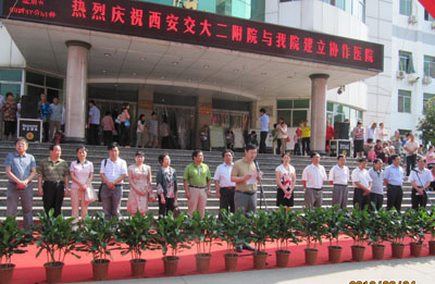 8月24日上午,我院副院长高亚教授、对外服务部主任乔万海教授、肿瘤病院常务副院长王西京教授、耳鼻咽喉病院副院长郑国玺教授、门诊部主任吴世学、神经内科主任吴海琴教授、神经外科周任教授、呼吸内科孙秀珍教授、呼吸内科护士长李家芝副主任护师等一行10人前往商洛市,与商洛市中心医院举行隆重的协作医院授牌、签约仪式。仪式由商洛市中心医院副院长余振南主持,商洛市中心医院党委书记邬文权参会,商洛市卫生局副局长董红梅出席仪式。