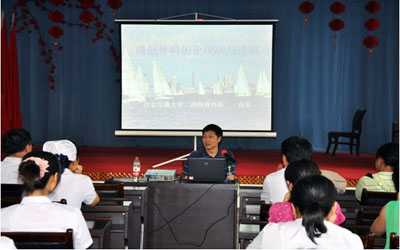 在讲座之前,我们受到了华县铁路医院领导及医护人员的热烈欢迎,华县铁路医院的王秉亮院长针对医院的现状进行了分析,并要求各科医护人员通过此次的交流认真学习我们的工作理念和工作态度,并表示今后这种活动要长期、有计划的开展,目的是为进一步提高双方医院的医疗护理质量、科研水平与创新意识。