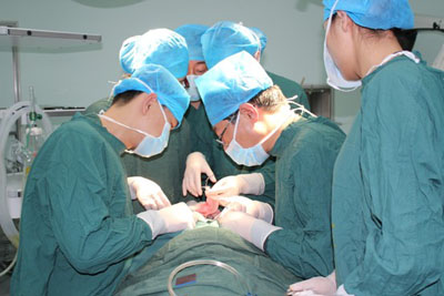 患儿关锦培,为山西临汾县人,3个月前出现呼吸困难,而且进行性加重,当地医院怀疑为甲状腺肿物,但因为孩子年龄小、风险大,建议转院。之后患儿全家辗转求医,但由于病例疑难,一直未能获得有效的治疗。1个月前急诊入我院耳鼻咽喉头颈外科一病区。入院后2小时,患儿呼吸困难突然加重,呈明显缺氧表现,耳鼻咽喉头颈外科许珉主任医师、张青副主任医师、及总住院、值班大夫齐集手术室,急诊气管切开,于生死一线挽救了这个幼小的生命。术后检查发现患儿气管上端有一近圆形肿物,堵塞90%以上的气管腔,气管周围也有增厚的软组织影。因为不能确定为气管壁内还是壁外肿物,切除肿物可能造成大范围气管、食管壁损伤。气管食管的损伤修复难度极高,手术可能面临的风险很大。