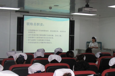 会上,首先由护理部刘红梅副主任讲解了静脉治疗小组成立的意义和重要性,强调我国是静脉治疗的大国,静疗是护理工作比例很大的部分,据资料显示输液占到患者总数的95%以上,输液量大,各种先进的技术不断更新,对护理提出挑战,随着患者维权意识的增强,与静脉治疗有关的投诉占护理投诉的54%,势在必行,要求护理人员要及时学习新知识、新技术,提高解决护理临床问题的综合能力。希望每一位静疗小组的人热爱此项工作,协助护士长做好病房的输液管理,使各项操作更加规范,使每一位接受治疗的患者得到最满意的治疗和护理,静疗小组提供平台,使大家共同学习共同进步,祝大家获得成就,获得乐趣。